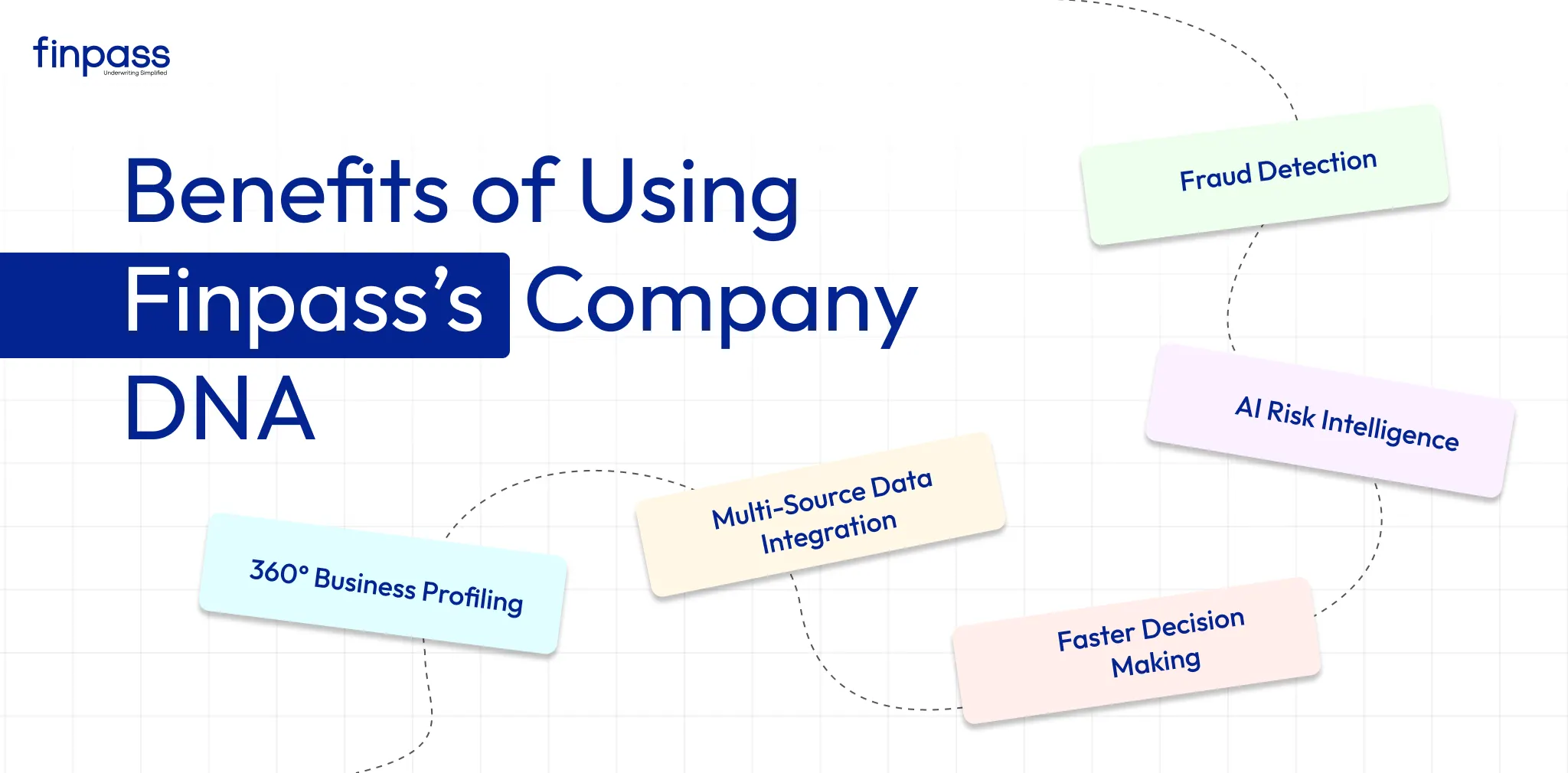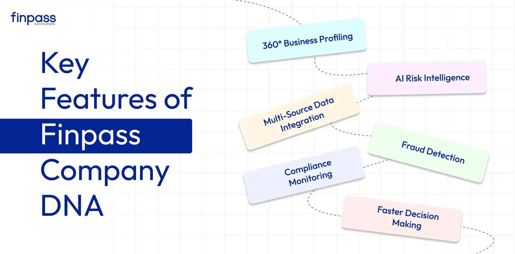 Finpass Company DNA is an all-in-one tool for business. It provides complete insights that help lenders evaluate financial data, compliance records, legal insights, and ownership details in one place. It simplifies the entire process of business verification and risk assessment.