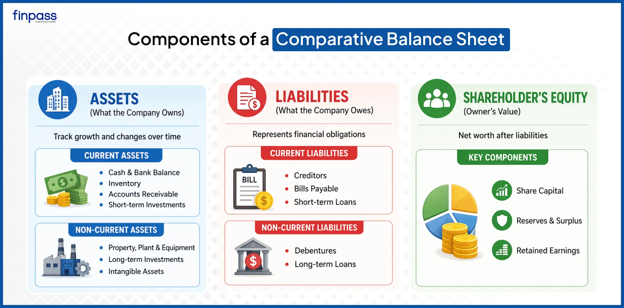 A Comparative Balance Sheet is an essential tool for assessing a company's financial health. The main components of the balance sheet are Assets, Liabilities, and shareholders’ equity. It offers several advantages and has some limitations.